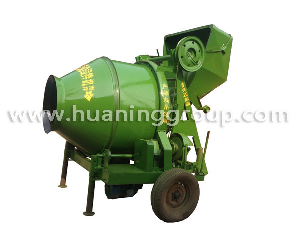 JZC350 drum concrete mixer machine with wire rope hopper is the self-falling concrete mixing machine and widely used for mixing plastic and damp-dry rigid concrete.